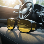 They cut down on glare and are made to fit easily over prescription glasses or on their own. This makes them a useful option for drivers who already wear glasses but want extra support when driving in the rain, fog, or at dusk. Their design focuses on improving brightness and contrast and making it easier on the eyes of drivers during long night drives. It's not just about style; it's also about visual clarity, less glare, and less eye strain on long drives at night.